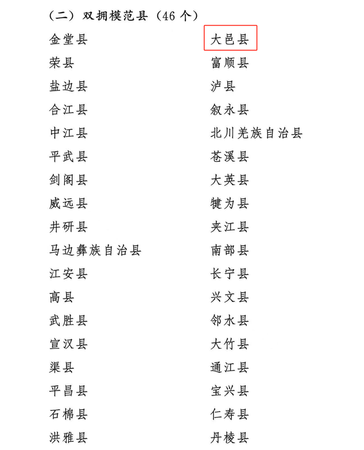 1月4日 中共四川省委 四川省人民政府 四川省军区 决定授予成都市等118个市(州)、县(市、区) “四川省双拥模范城(县、区)”称号 大邑县荣获第十二届四川省双拥模范县称号。   我县坚持以习近平新时代中国特色社会主义思想为指导,全面贯彻落实党的二十大精神,深入贯彻习近平总书记关于加强军政军民团结的重要论述和习近平总书记来川视察重要指示精神,牢固树立“以退役军人为中心”工作理念,坚持把双拥工作作为促进军政、军民团结的重要工程,扎实做好新时代双拥工作,为推进强国强军汇聚力量。    近年来,驻邑武警部队官兵参与大邑“8·20”等抢险救援、巡逻警戒3000余人次,民兵参与抗洪抢险1000余人次,执行巡逻警戒、交通管控、疫情防控等8000余人次。驻邑部队定点帮扶村、学校4个,帮扶困难户20余户,为群众修路、建房、助学等投入620余万元。12名现役军人担任国防教育辅导员,开展国防教育宣讲150余场、10万余人次,为四川电影电视学院、文轩职业技术学院等7所学校军训40余场、4万余人次。    全域拓宽优待赋能。打造拥军街、红色林盘、三线记忆展览馆等双拥示范点36个。扎实推进退役军人及“三属”特别优待,创建“邑路拥军”品牌,全县800余家旅游、餐饮、酒店等行业龙头企业加入优待行列,为军人及军属提供专属优待。金控置业集团(金融中心)提供商业铺面和写字楼9100平方米,对退役军人及亲属创业房租分区域实行“免三减二和免二减三”的优惠支持。5A级景区安仁古镇核心区刘氏庄园博物馆面向全国退役军人、三属免门票,建川博物馆对持优待证的游客实行与现役军人同等优待。2024年1月1日起,退役军人及“三属”持优待证可免费乘坐101路、102路、103路、104路、108路公交,我县优待证赋能工作走在全市前列。    兵支书、兵委员、退役军人党员下沉至143个村(社区)发挥作用,在基层治理中彰显责任担当,塑造出“邑起护童心”“政策法律进社区”等6项服务品牌,开展文明实践、国防教育、社会风险治理等10余项基层治理工作,常态化参与应急处突、消防培训、监测预防等突发公共事件演练,开展消防安全隐患排查、走访慰问、创文创卫等志愿服务超1000次,化解难点堵点120余件,基层治理服务总时长上万小时。