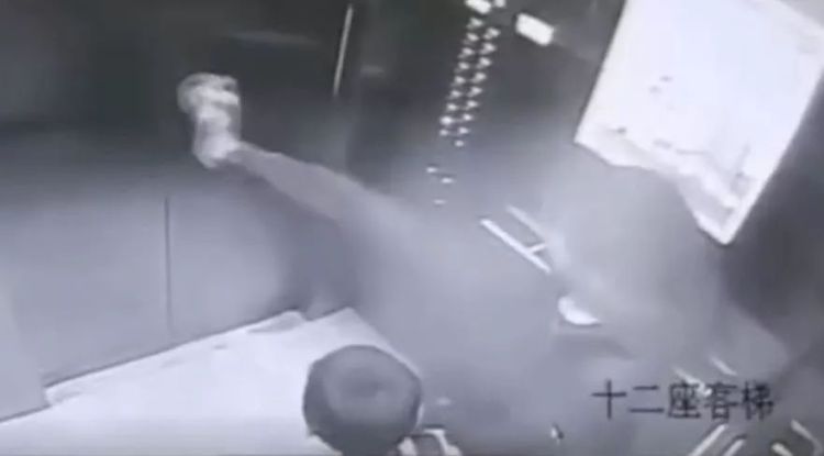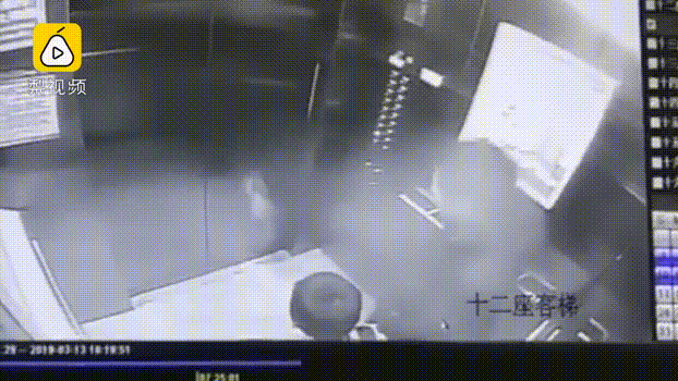 电梯门就被踹!飞!了!